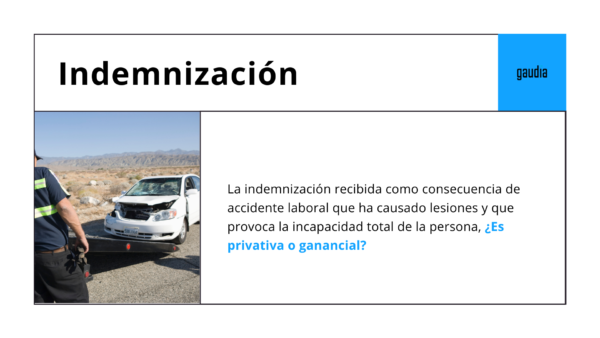 Indemnización por accidente laboral que provoca la incapacidad total de uno de los cónyuges: ¿es privativa o ganancial?