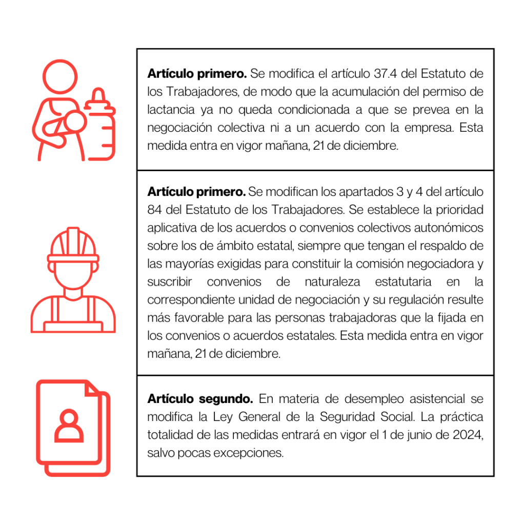 Importantes novedades publicadas en el día de hoy. Se trata del Real Decreto-ley 7/2023, de 19 de diciembre, por el que se adoptan medidas urgentes, para completar la transposición de la Directiva (UE) 2019/1158, del Parlamento Europeo y del Consejo, de 20 de junio de 2019, relativa a la conciliación de la vida familiar y la vida profesional de los progenitores y los cuidadores, y por la que se deroga la Directiva 2010/18/UE del Consejo, y para la simplificación y mejora del nivel asistencial de la protección por desempleo.